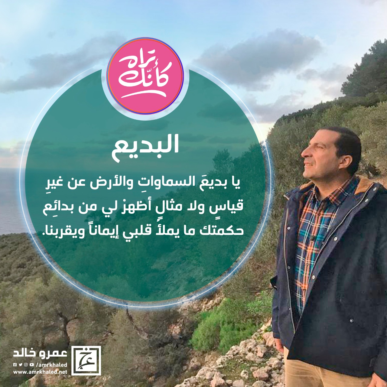 amrkhaled يا بديع السماوات والأرض من غير قياس ولا مثال .. اظهر لي من بدائع حكمتك ما يملأ قلبي إيماناويقربنا "