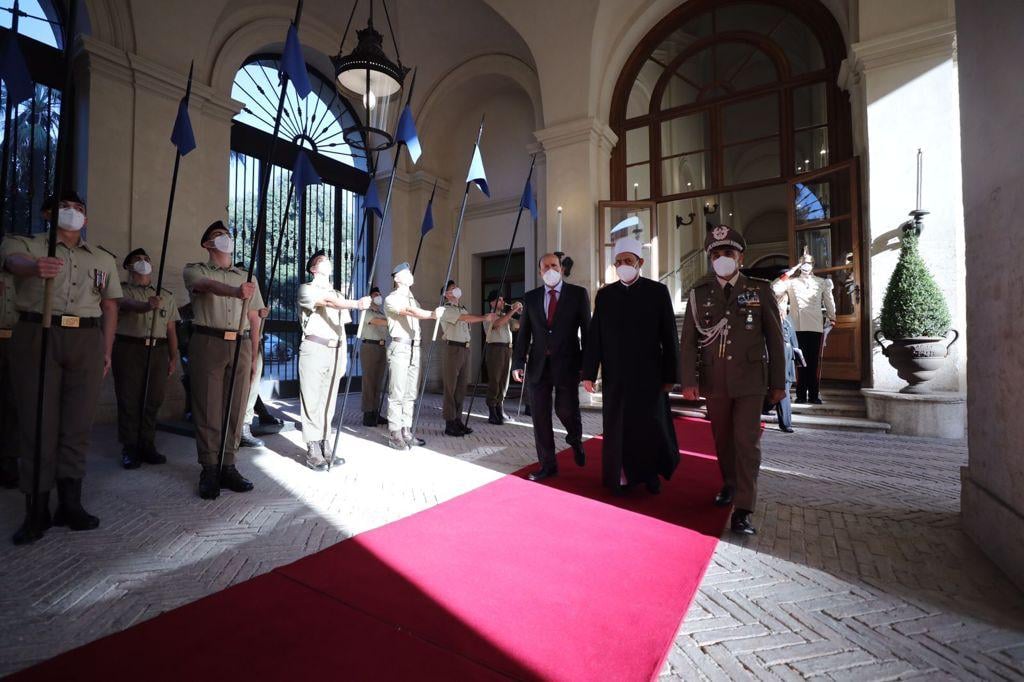 وفي بداية اللقاء، رحب الرئيس الإيطالي بشيخ الأزهر في العاصمة الإيطالية روما، مؤكدا ترحيبه بهذا اللقاء المهم؛ نظرًا لما يقوم به شيخ الأزهر من أنشطة عالمية لتعزيز قيم السلام العالمي والأخوة بين أتباع الأديان، معربًا عن إعجابه بالعلاقة التي تربط شيخ الأزهر والبابا فرنسيس، وأنها تظهر المعدن الحقيقي للصداقة والأخوة بين علماء الدين وأتباع الرسالات، وتقدم القدوة ليحذو الجميع حذوهم.