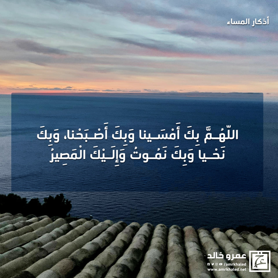 amrkhaled "اللهم بك أمسينا وبك أصبحنا وبك نحيا وبك نموت وإليك المصير"من قالها حين يمسي بعثه الله يوم القيامة علي المحجة البيضاء