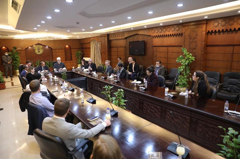 استقبل فضيلة الدكتور محمد الضويني، وكيل الأزهر، وفد مساعدي نواب الكونجرس الأمريكي، اليوم الخميس، بمقر مشيخة الأزهر، للتعرف على جهود الأزهر في مكافحة الإرهاب والتطرف، وتعزيز قيم التسامح والأخوة الإنسانية.