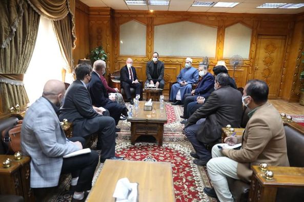 في بداية اللقاء رحب وكيل الأزهر بالسيد فانك والوفد المرافق له في مشيخة الأزهر، ناقلا لهم تحيات فضيلة الإمام الأكبر أ.د أحمد #الطيب #شيخ_الأزهر، مؤكدا حرص فضيلته على تعزيز أوجه التعاون مع كافة الطوائف والمؤسسات الدينية الإقليمية والدولية، من أجل إعلاء قيم المواطنة والإنسانية وترسيخ سبل السلام والتسامح والمحبة، من خلال تنشيط أوجه الحوار بين أتباع الأديان لنشر قيم السلام، ونبذ أشكال العنف والكراهية.