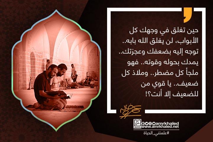 علمتني الحياة.."حين تغلق في وجهك كل الأبواب.. لن يغلق الله بابه.. توجه إليه بضعفك وعجزك"