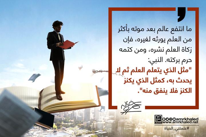 علمتني الحياة.. "ما انتفع عالم بعد موته بأكثر من العلم يورثه لغيره فإن زكاة العلم نشره"