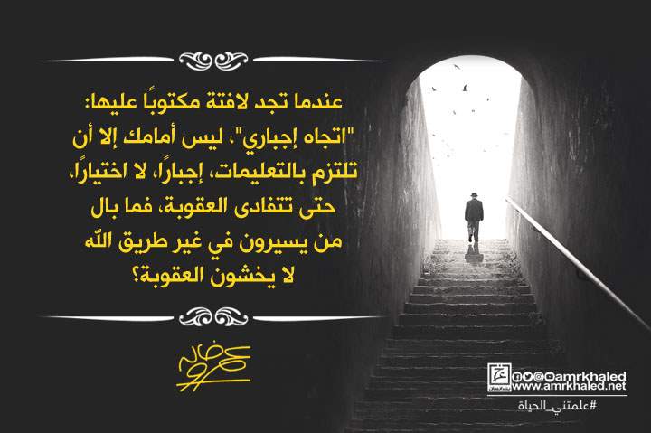 علمتني الحياة.. "عندما تجد لافتة مكتوبًا عليها (اتجاه إجباري) ليس أمامك إلا أن تلتزم بالتعليمات"