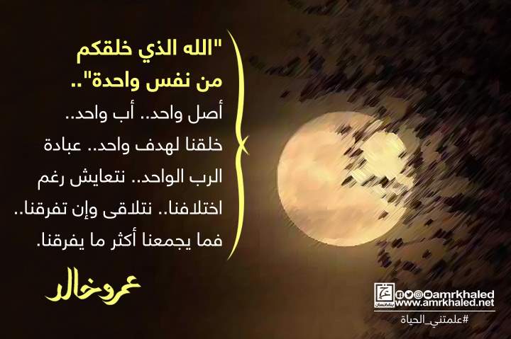 علمتني الحياة.. "أصل واحد.. أب واحد.. خلقنا لهدف واحد.. عبادة الرب الواحد.. نتعايش رغم اختلافنا"