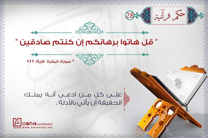 حكمة قرآنية.. من ادعى أنه يملك الحقيقة فليأت بالأدلة