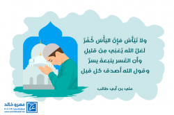 ولا تيأس فإن اليأس كفر لعل الله يُغني من قليل وأن العُسر يتبعه يُسر وقول الله أصدق كل قيل