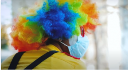 صور.. طالب مصري بكلية الهندسة يرتدي زي البلياتشو ويوزع الكمامات على أطفال المناطق الشعبية