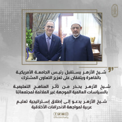 الطيب لرئيس الجامعة الأمريكية بالقاهرة :قادرون علي مواجهة الغزوالثقافي ومساعي نشر الفوضي