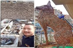 تمثال من الخردة.. صورة إبداعية لنحات مصري
