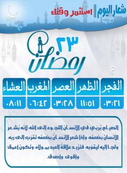 مواقيت الصلاة وموعد الإفطار ليوم السبت 23 رمضان
