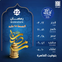 مواقيت الصلاة وموعد الإفطار ليوم الجمعة 22 رمضان