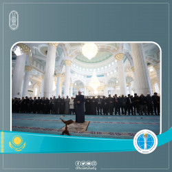 شيخ الأزهر يؤم الوفود الإسلامية المشاركة في مؤتمر "زعماء الأديان" بأكبر مساجد آسيا الوسطى