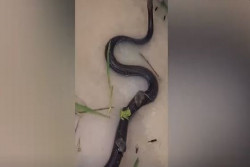 فيديو| فئران وضفادع وخنافس تهرب من الأمطار على ظهر ثعبان سام