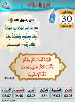 مواقيت الصلاة وموعد آذان المغرب الأربعاء 30 رمضان بتوقيت القاهرة .. افرح بلا سيئات