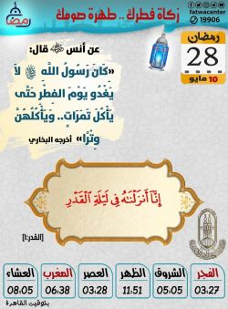 مواقيت الصلاة وموعد آذان المغرب الاثنين 28 رمضان بتوقيت القاهرة .. زكاة فطرك طهرة صومك