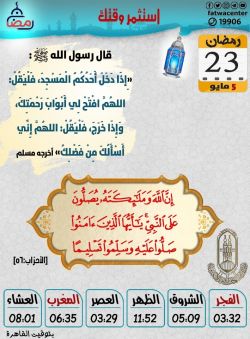 مواقيت الصلاة وموعد آذان المغرب الأربعاء 23 رمضان بتوقيت القاهرة ..استثمر وقتك