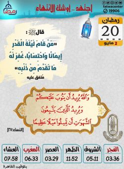 مواقيت الصلاة وموعد آذان المغرب الاثنين 21 رمضان بتوقيت القاهرة .. التمس ليلة القدر