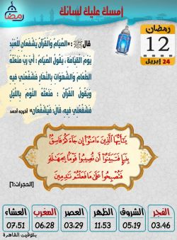 مواقيت الصلاة وموعد آذان المغرب السبت 12 رمضان .. امسك عليك لسانك