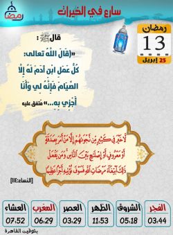 مواقيت الصلاة وموعد آذان المغرب الأحد 13 رمضان .. سارع في الخيرات