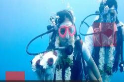 في زمن كورونا.. شاهد| عروسان يحتفلان بزفافهما تحت الماء