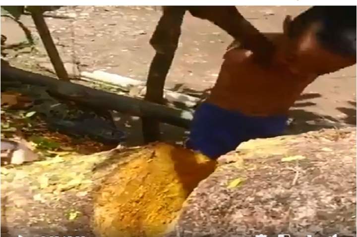 شاهد| طفل مقطوع الذراعين يقطع الأشجار بطريقة مدهشة