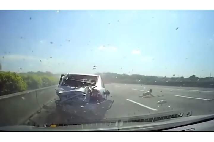 بالفيديو.. نجاة طفلين قذفتهما سيارة في حادث سير