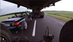 فيديو يحبس الأنفاس.. مغامر يقود سيارته أسفل شاحنة مقطورة ويتجاوزها من بين عجلاتها