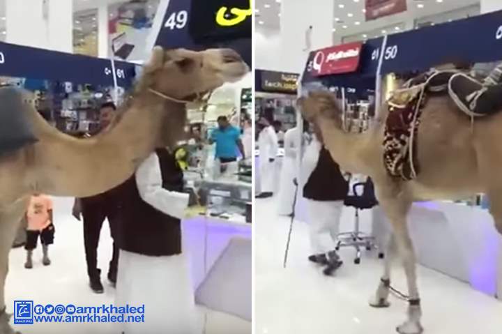 بالفيديو.. مسن يصطحب ناقته في جولة داخل مول بالرياض