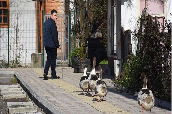 بالصور| قصة صداقة غريبة بين شاب تركي وطيور "الإوز"