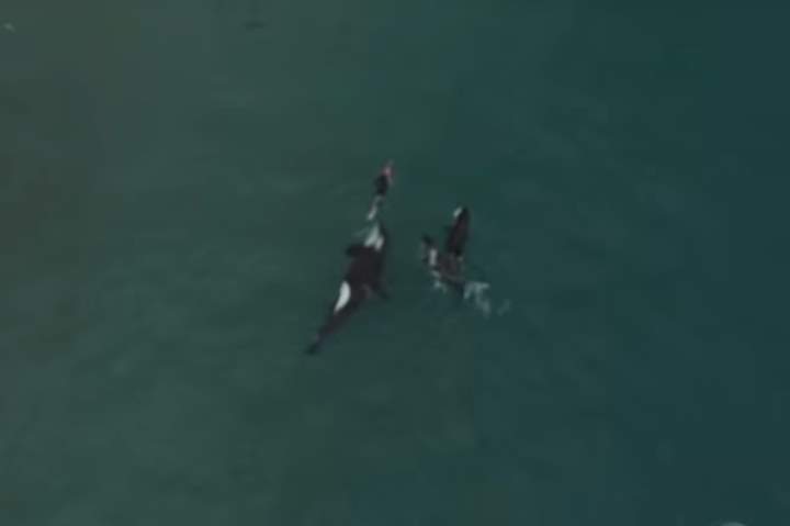 لحظات رعب.. ثلاثة حيتان تحاصر امرأة تسبح في البحر