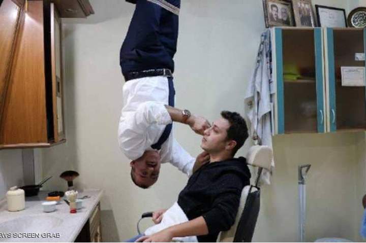 "الحلاق الخفاش".. يباشر عمله معلقا في السقف منذ 23 عاما