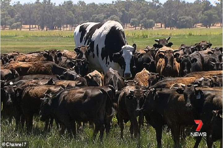 صور| بقرة ضخمة تنافس لاعبي السلة في الطول