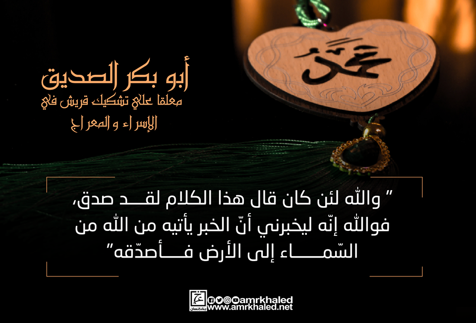 أبو بكرالصديق معلقا علي تشكيك قريش في الإسراء والمعراج :" والله لئن كان قال هذا الكلام لقد صدق، فوالله إنّه ليخبرني أنّ الخبر يأتيه من الله من السّماء إلى الأرض فأصدّقه"