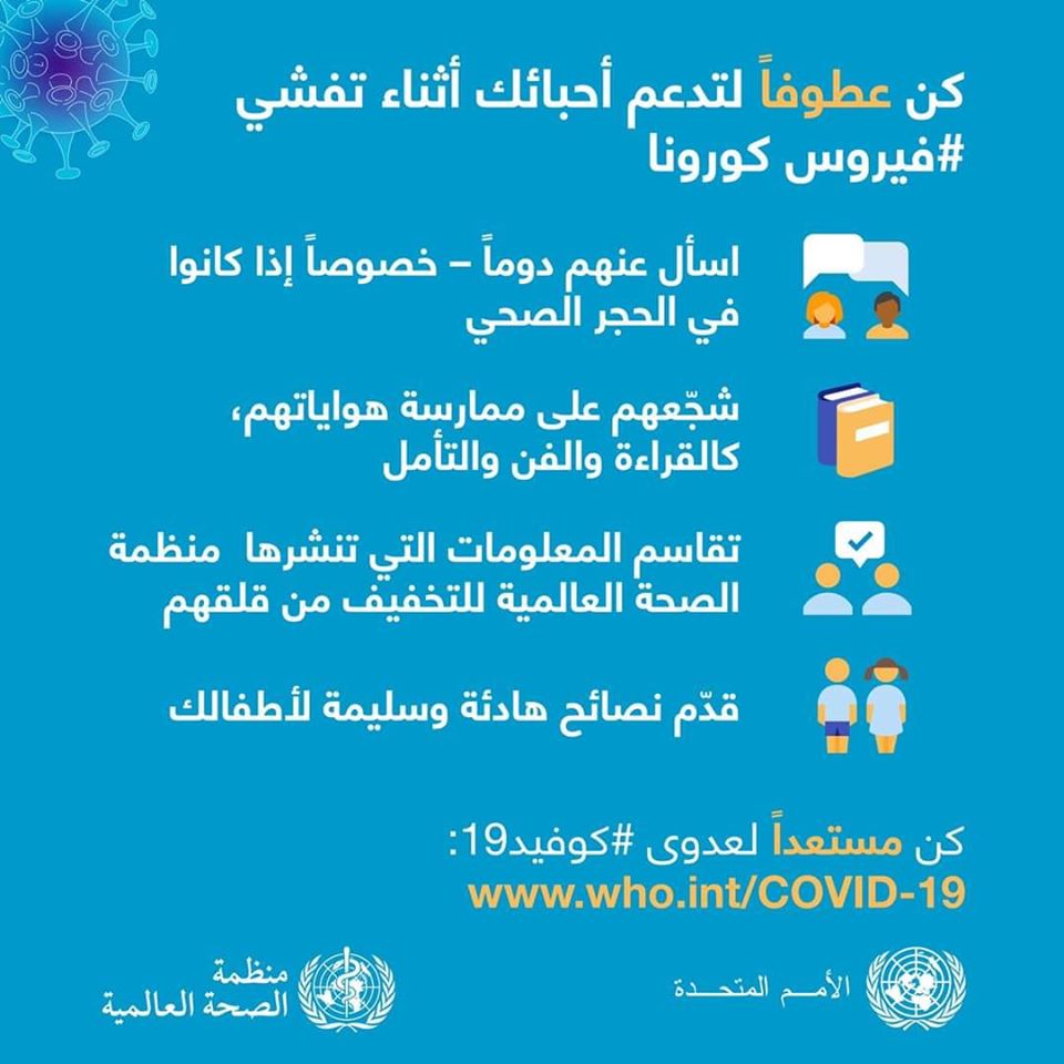 •شارك معلومات منظمة الصحة العالمية لتخفيف قلقهم