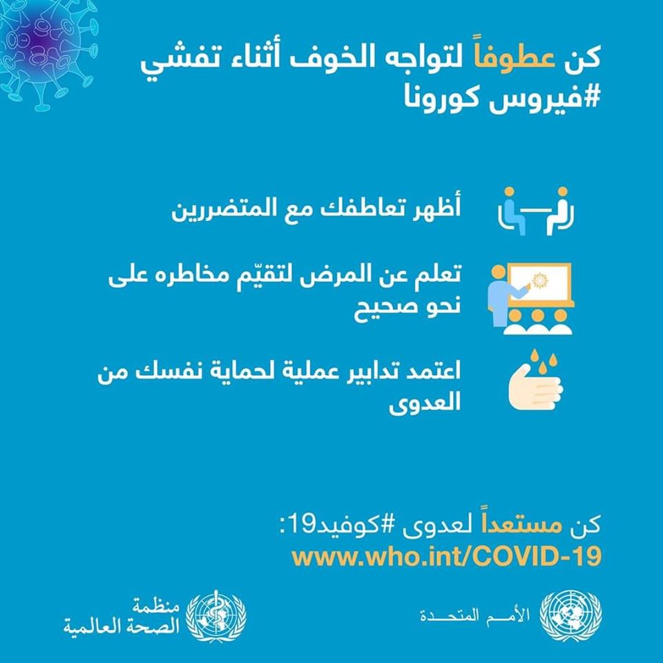 وتابعت: كن عطوفاً لتواجه الخوف أثناء تفشي فيروس "COVID19":