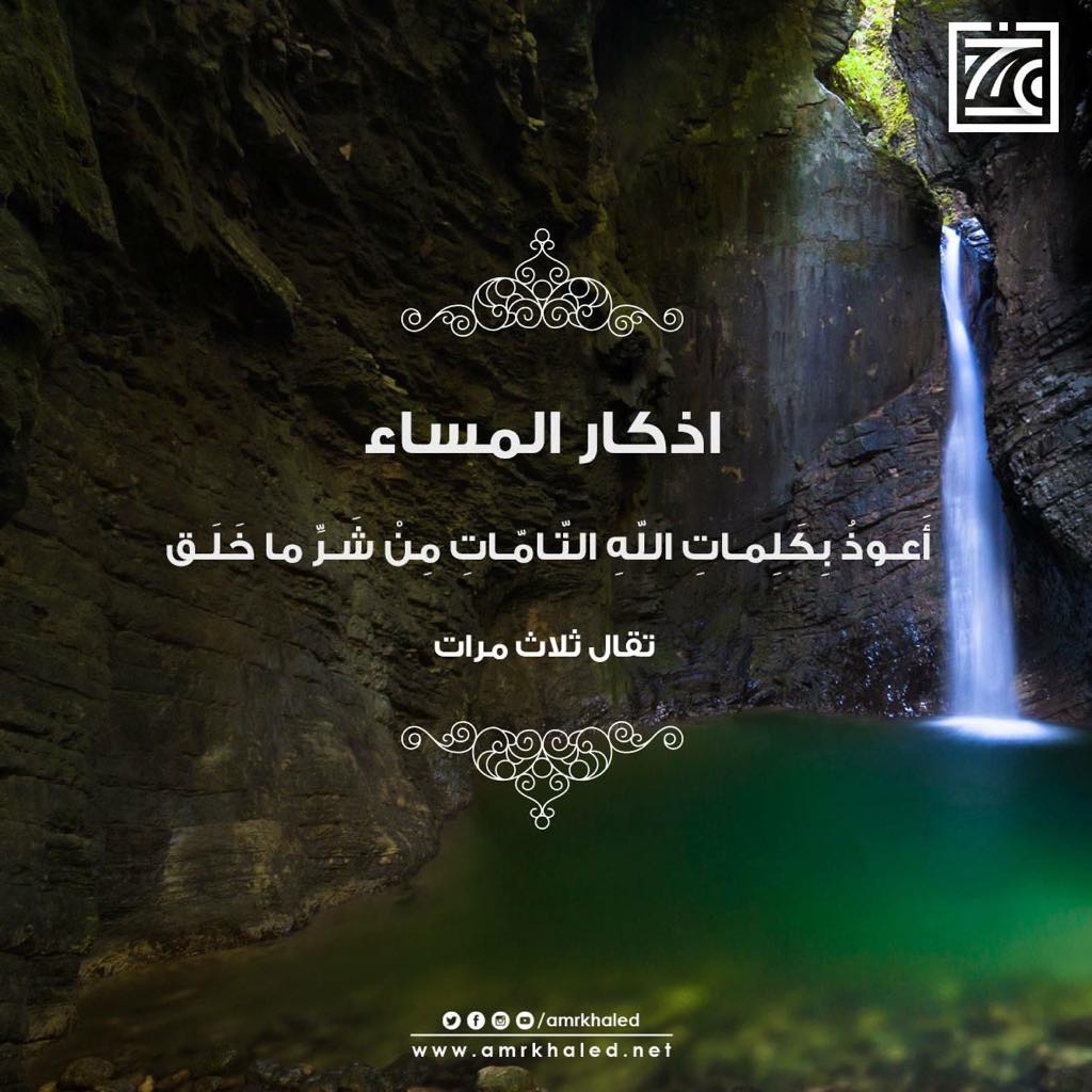amrkhaled أذكار المساء .. من قالها ثلاث مرات وقاه الله من كل الشرور أعوذ بكلمات الله التامات من شر ما خلق من قالها ثلاثا حين يمسي وقاه الله من كل الشرور