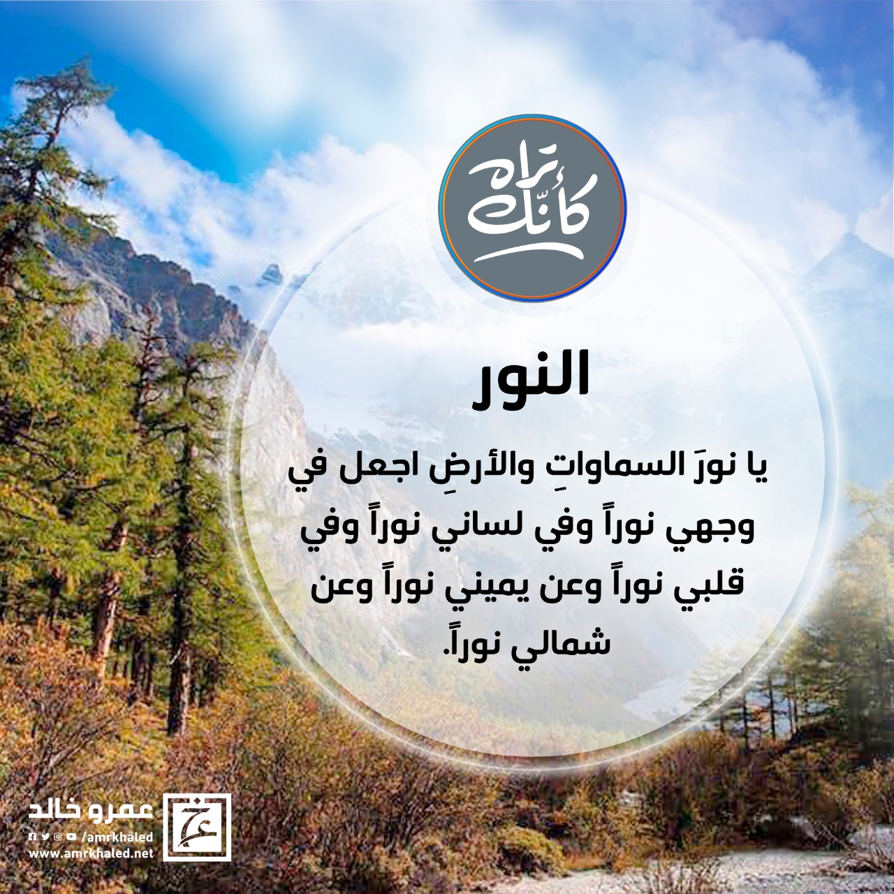 "يا نور السماوات والأرض اجعل في وجهي نورا وفي لساني نورا وفي قلبي نورا وعن يميني نورا وعن شمالي نورا "#كأنك_تراه