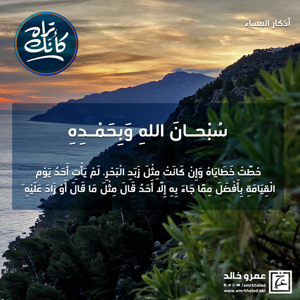 amrkhaled سبحان الله وبحمده " من قالها حين يمسي حطت خطاياه وإن كانت مثل زبد البحر