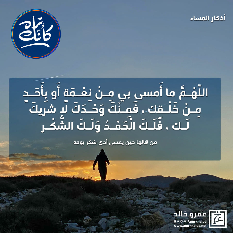 من قالها حين يمسي فقد أدي شكر يومهاقرأ أيضا:
