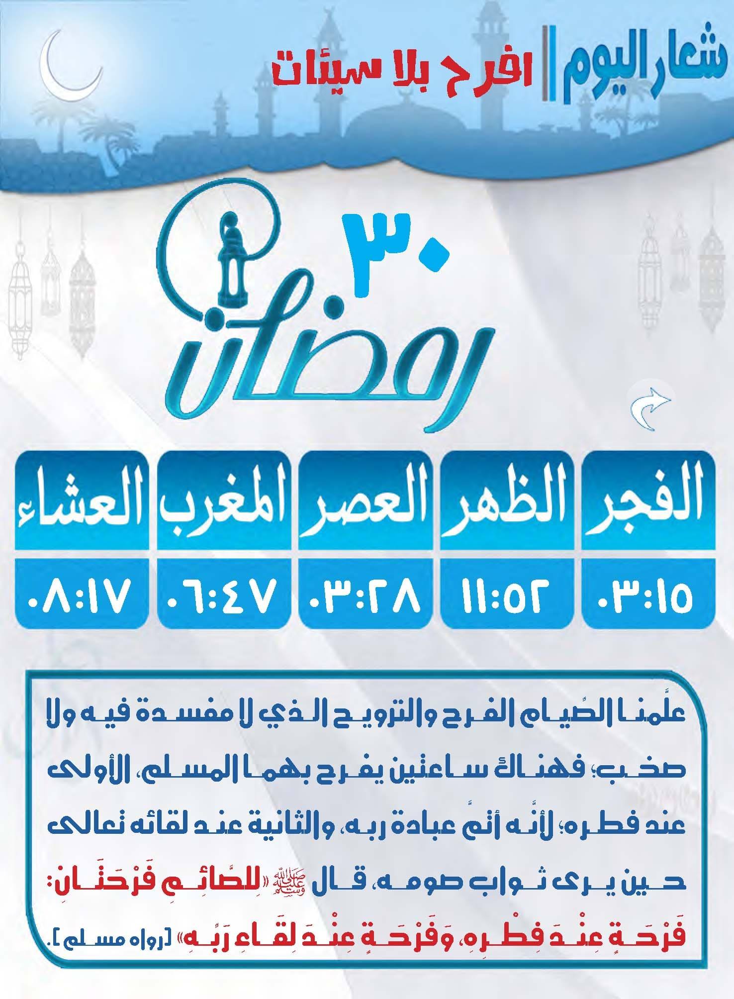 هذا موعد صلاتي المغرب والعشاء في اليوم الثلاثين من رمضان بتوقيت القاهرة .. افرح بلا سيئات