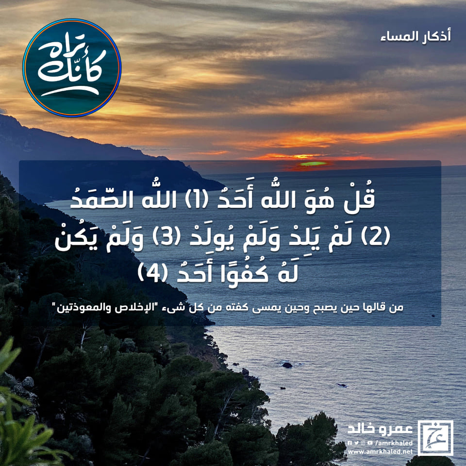 amrkhaled قل هو الله أحد * الله الصمد *لم يلد ولم يولد *ولم يكن له كفوا أحد من قالها حين يمسي كفته من كل شئ