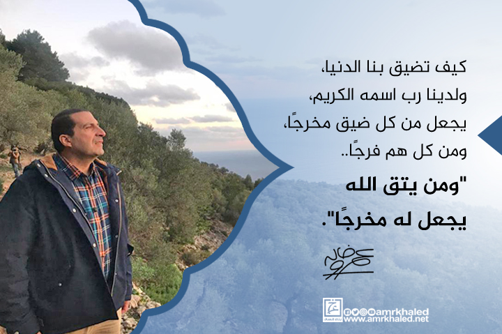 amrkhaled "كيف تضيق بنا الدنيا، ولدينا رب اسمه الكريم، يجعل من كل ضيق مخرجًا، ومن كل هم فرجًا.. {ومن يتق الله يجعل له مخرجًا}"