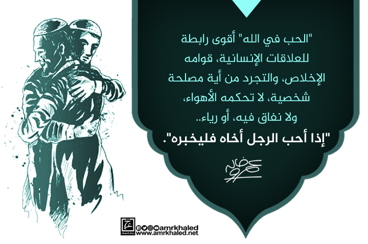 "الأخوة في الله أقوى رابطة للعلاقات الإنسانية، قوامه الإخلاص، والتجرد من أية مصلحة شخصية، لا تحكمه الأهواء، ولا نفاق فيه، ولا رياء.. (إذا أحب الرجل أخاه فليخبره)".