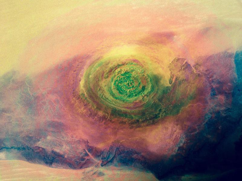 تُعرف هذه القبة أيضًا باسم هيكل ريشات، وهي قبة متآكلة في الصحراء الغربية في موريتانيا، وهي عجيبة جيولوجية تمتد بقطر 25 ميلاً، ويمكن مشاهدتها بسهولة من الفضاء.