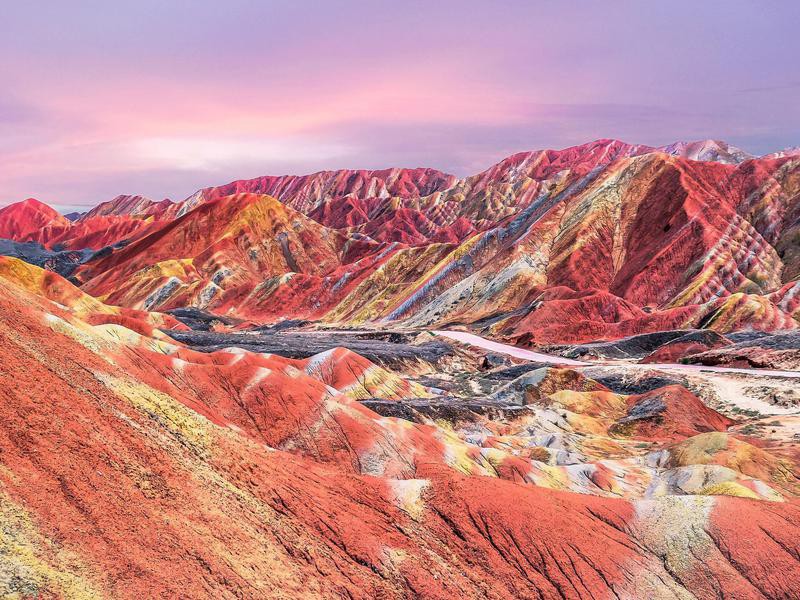مع خطوطها ذات الألوان الرائعة ستبهرك جبال قوس قزح الموجودة في الصين، والتي تشكلت منذ أكثر من 24 مليون سنة عندما تم الضغط على العديد من طبقات الحجر الرملي الملون معًا، وقد خلق المطر والتآكل على مدى آلاف السنين اللوحة الطبيعية نراها اليوم.