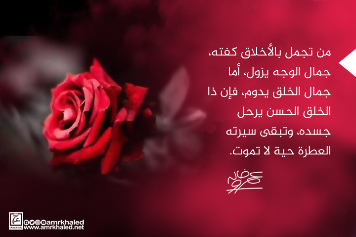 amrkhaled "من تجمل بالأخلاق كفته، جمال الوجه يزول، أما جمال الخلق يدوم، فإن ذا الخلق الحسن يرحل جسده، وتبقى سيرته العطرة حية لا تموت".