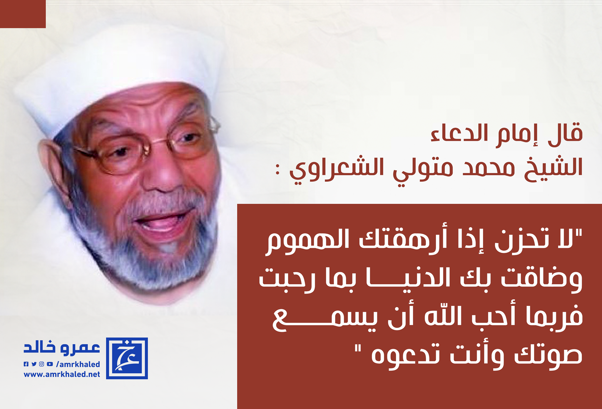 amrkhaled قال إمام الدعاء الشيخ محمد متولي الشعراوي : "لا تحزن إذا أرهقتك الهموم وضاقت بك الدنيا بما رحبت فربما أحب الله أن يسمع صوتك وأنت تدعوه "