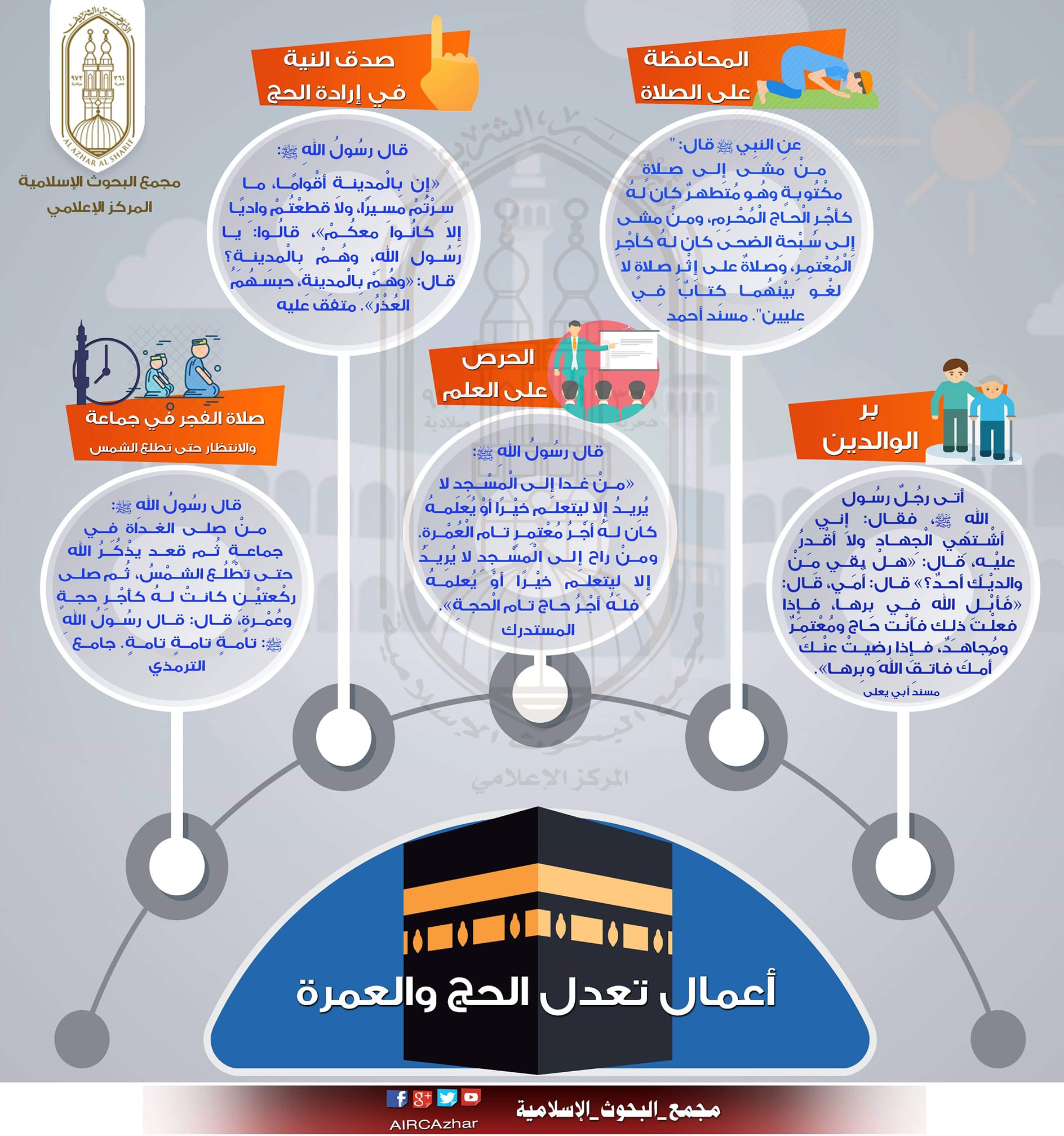 أعمال تعادل ثواب الحج والعمرة المحافظة علي الصلاة بر الوالدين صلاة الفجر صدقة النية فيما يتعلق بالحج المحافظة علي العلم
