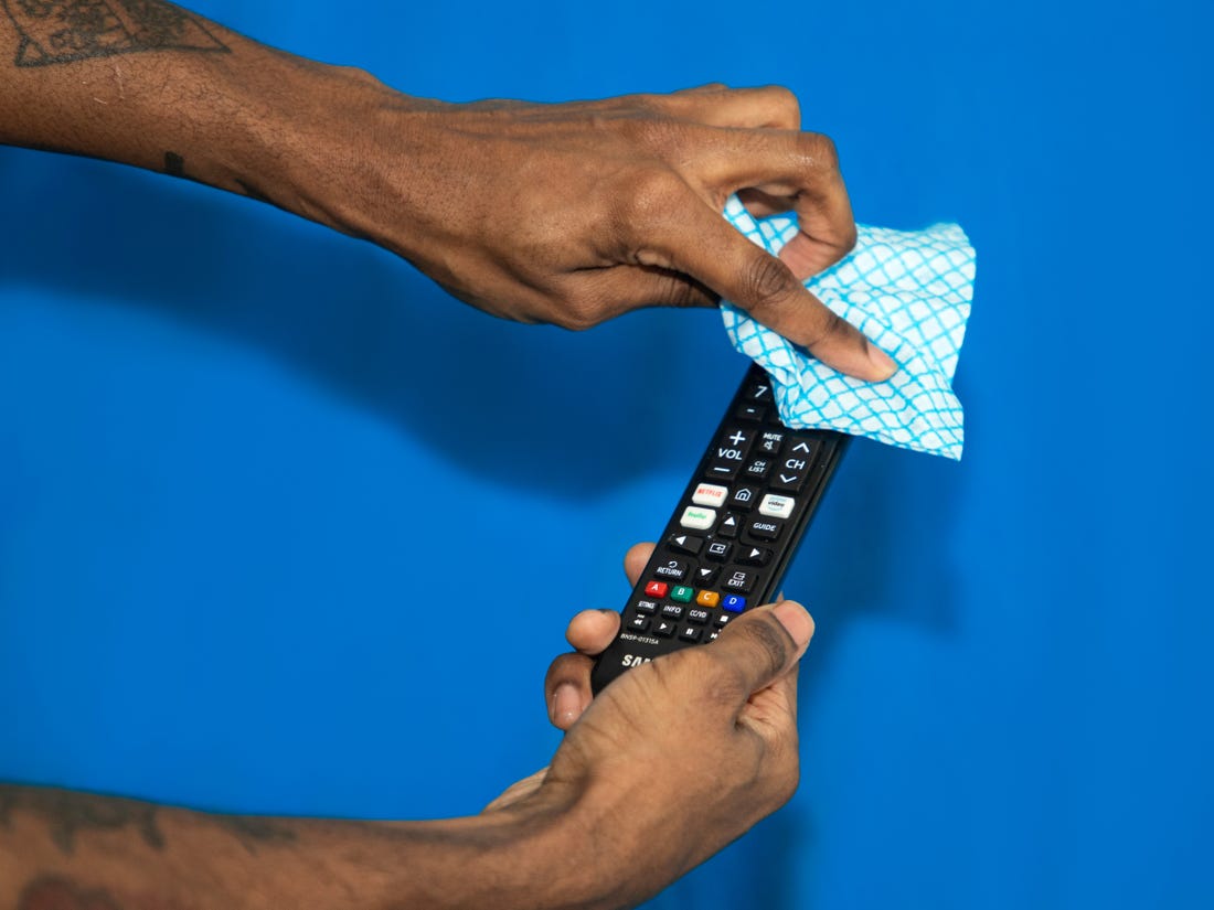 على الرغم من أن تطهير الأسطح يجب أن يكون جزءًا من روتين التنظيف المعتاد، تصبح العملية أكثر أهمية عندما يكون لديك شخص مريض في المنزل، ابدأ بالعناصر التي يتم لمسها بشكل شائع في المنزل مثل مفاتيح الإضاءة، مقابض الأبواب، مقابض الثلاجة، أجهزة التحكم عن بعد وخاصة الهواتف المحمولة، ومن الأفضل تطهير تلك المناطق باستخدام مناشف ورقية يمكن التخلص منها، بدلاً من الإسفنج، فباستخدام الإسفنج أو المناشف، تزداد فرص انتشار الجراثيم إلى أماكن أخرى.